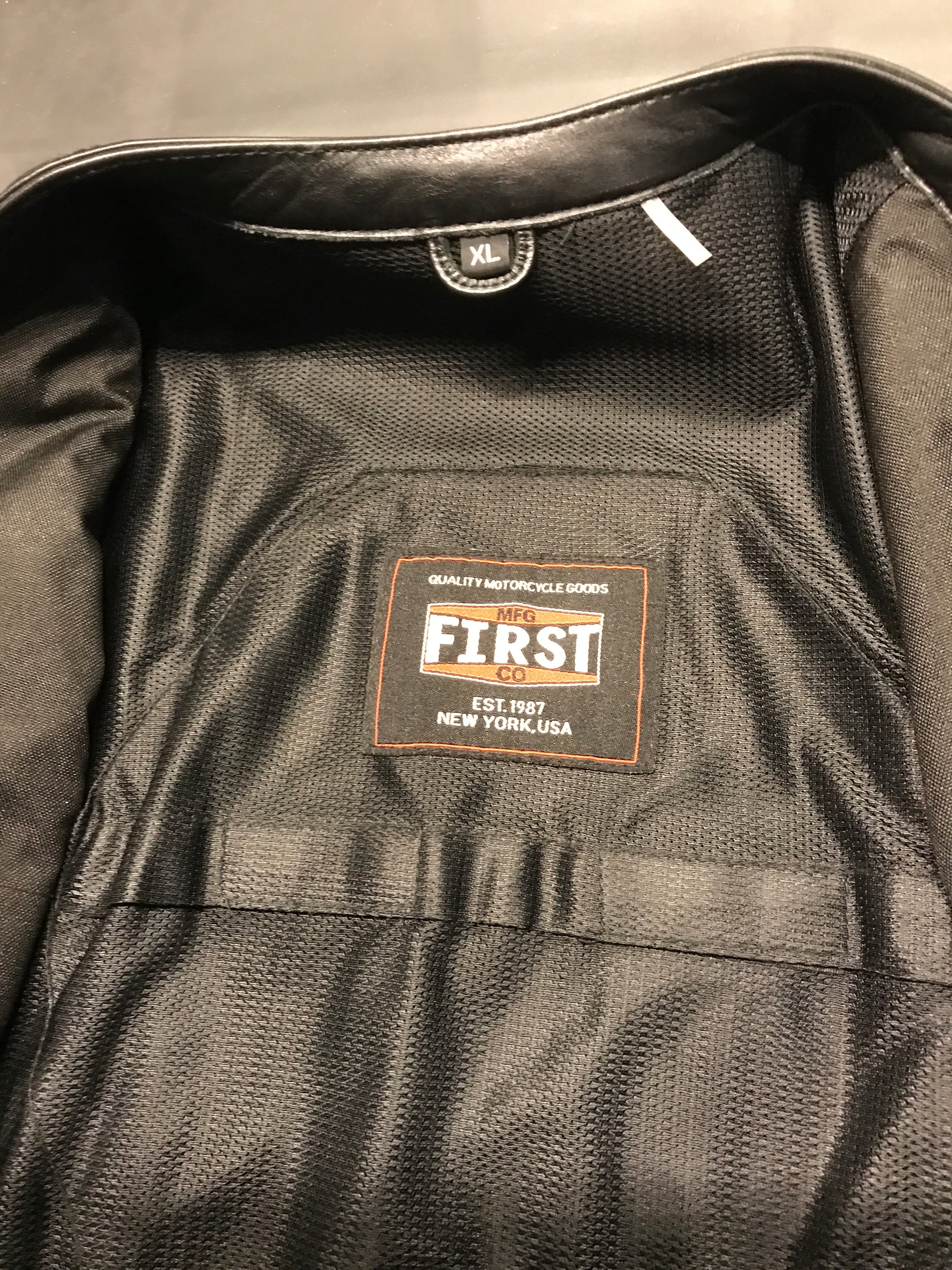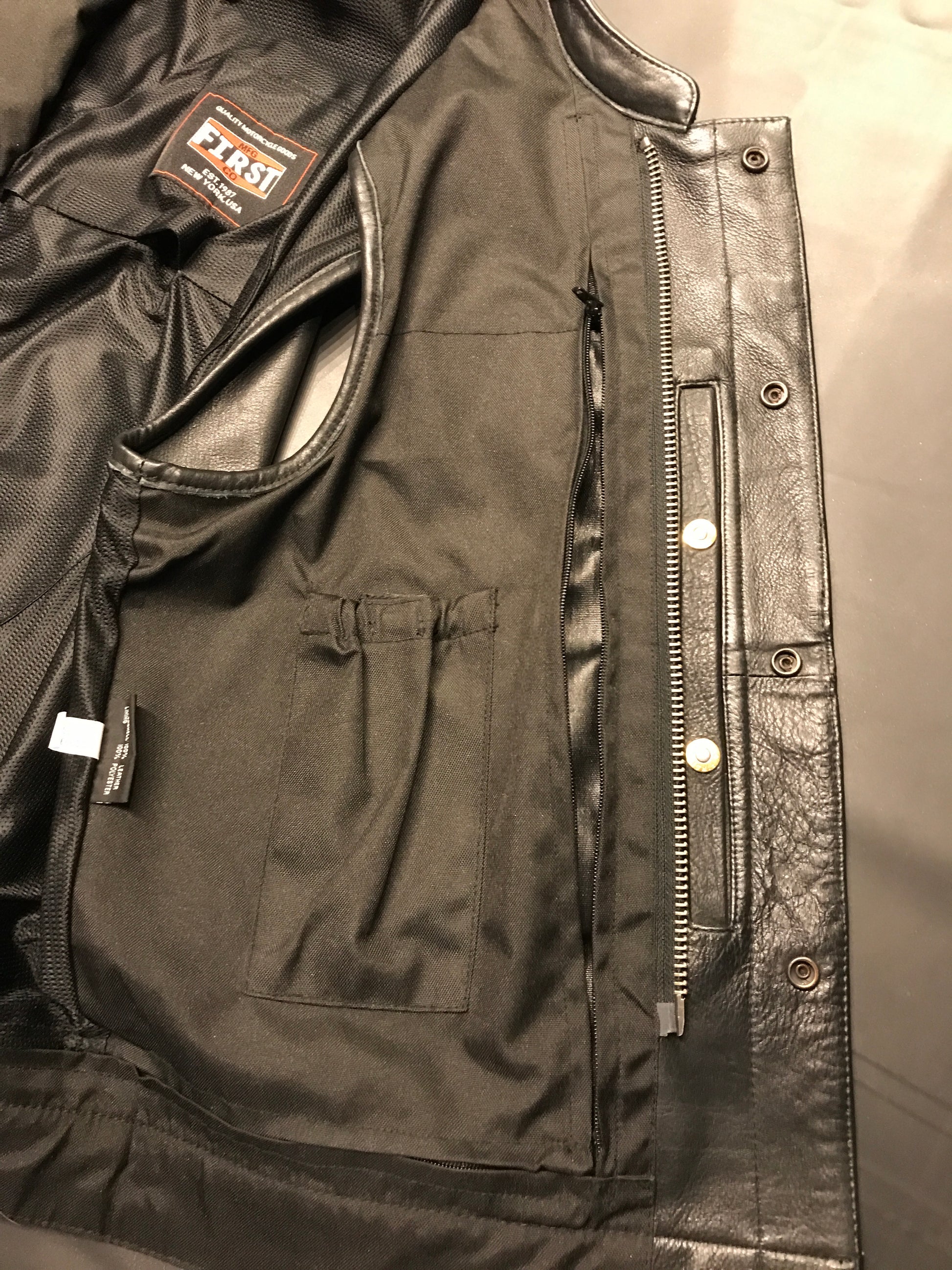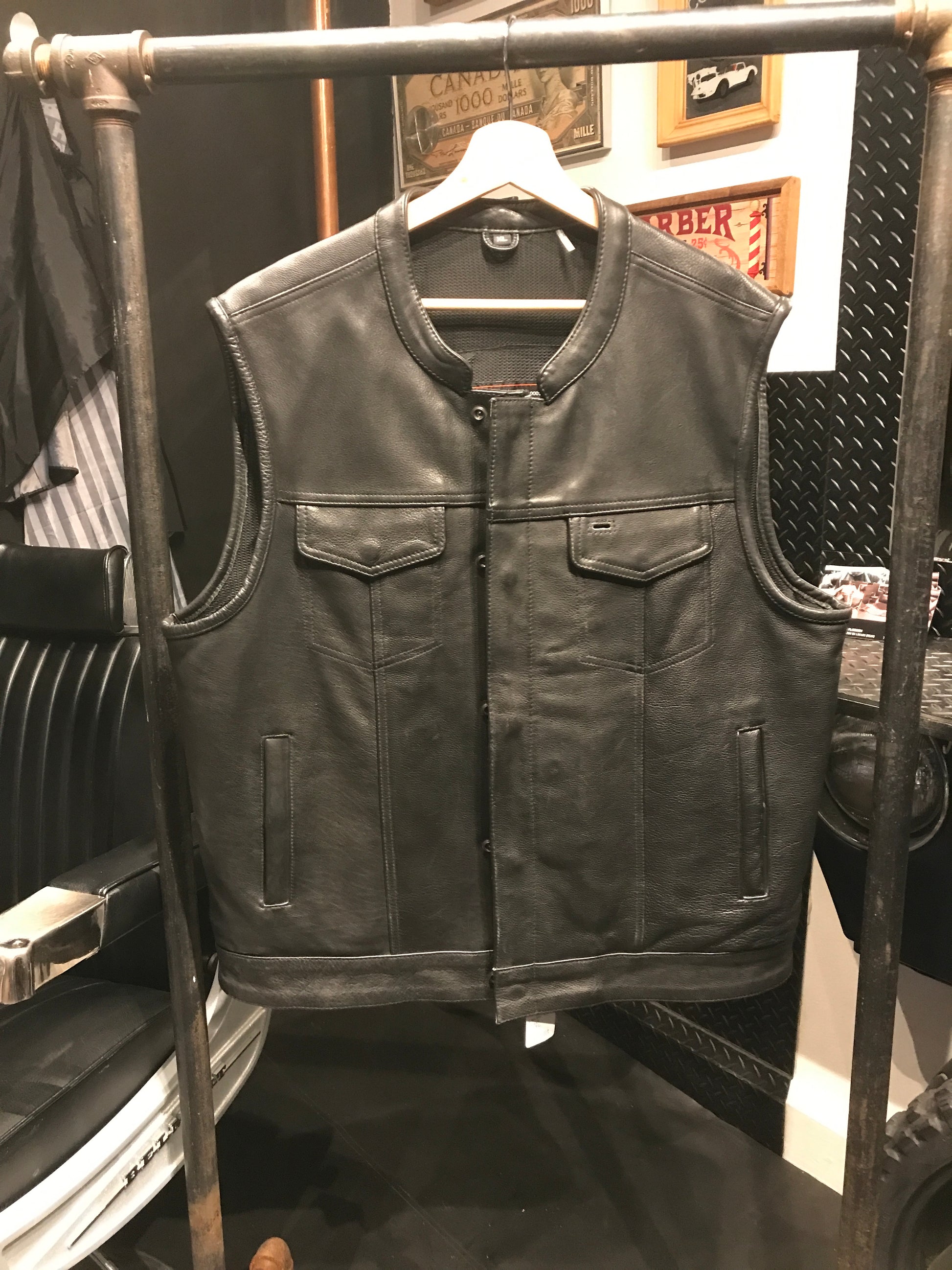 Men’s leather club vest with zip-out lining, size XL. MFG FIRST CO. NY